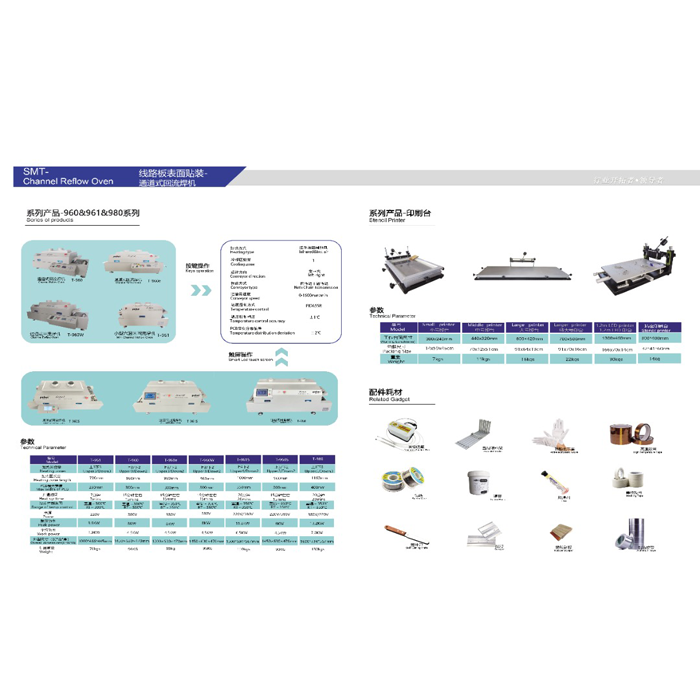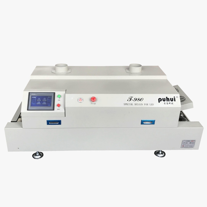 The T-980 is a smart touch screen PCB welding machine designed for efficient and precise soldering in modern electronics manufacturing. It features eight heating zones, utilizing a combination of infrared and hot air heating technologies to ensure uniform temperature distribution and high-quality results. The conveyor system provides smooth and consistent PCB transport, while the advanced PID closed-loop temperature control ensures accuracy and stability. With a spacious soldering area of 400 × 1160 mm, it accommodates various PCB sizes and components, including LEDs and ICs. Compact, reliable, and user-friendly, the T-980 is ideal for small to medium-scale production and prototyping.